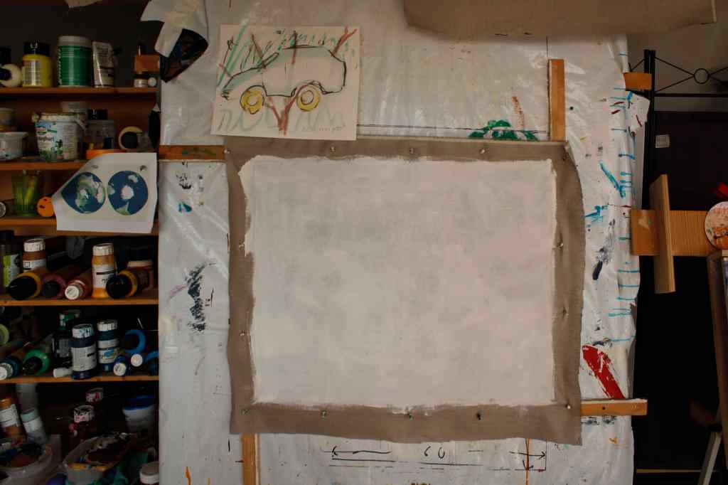 Vorbereitendes Aquarell und leere Leinwand