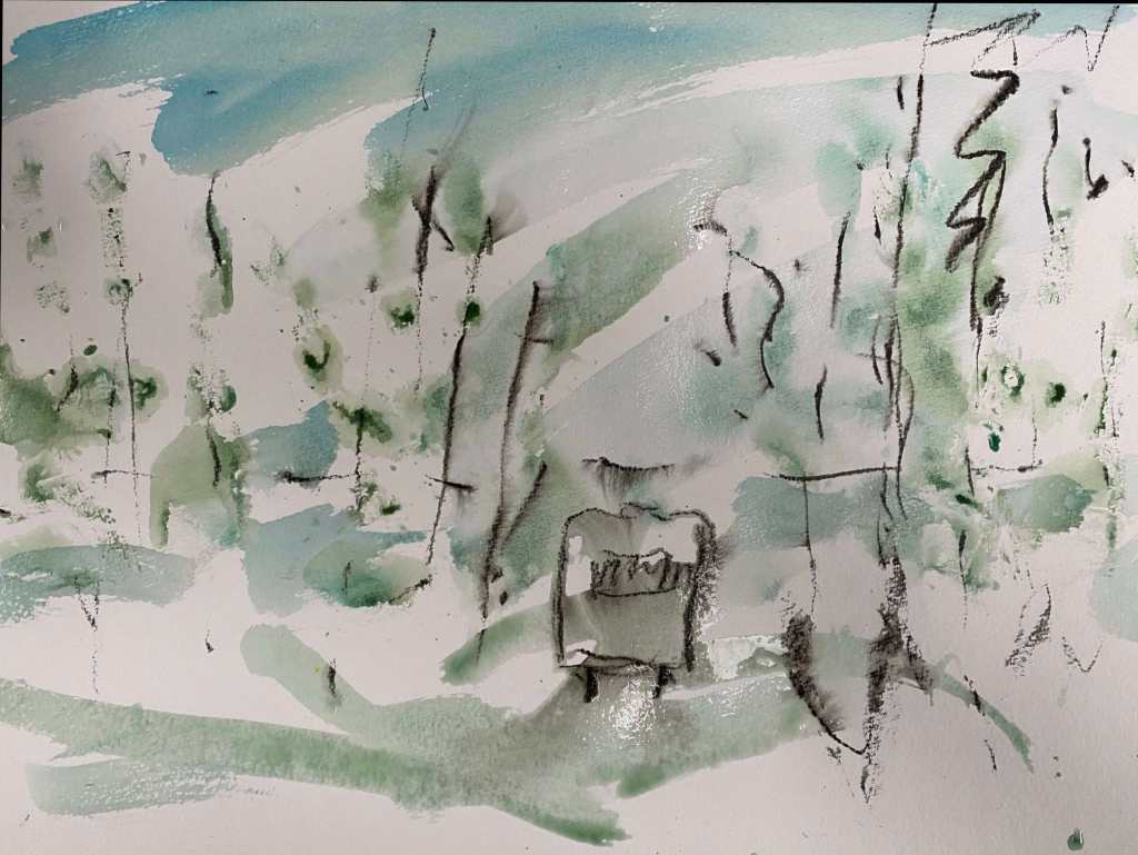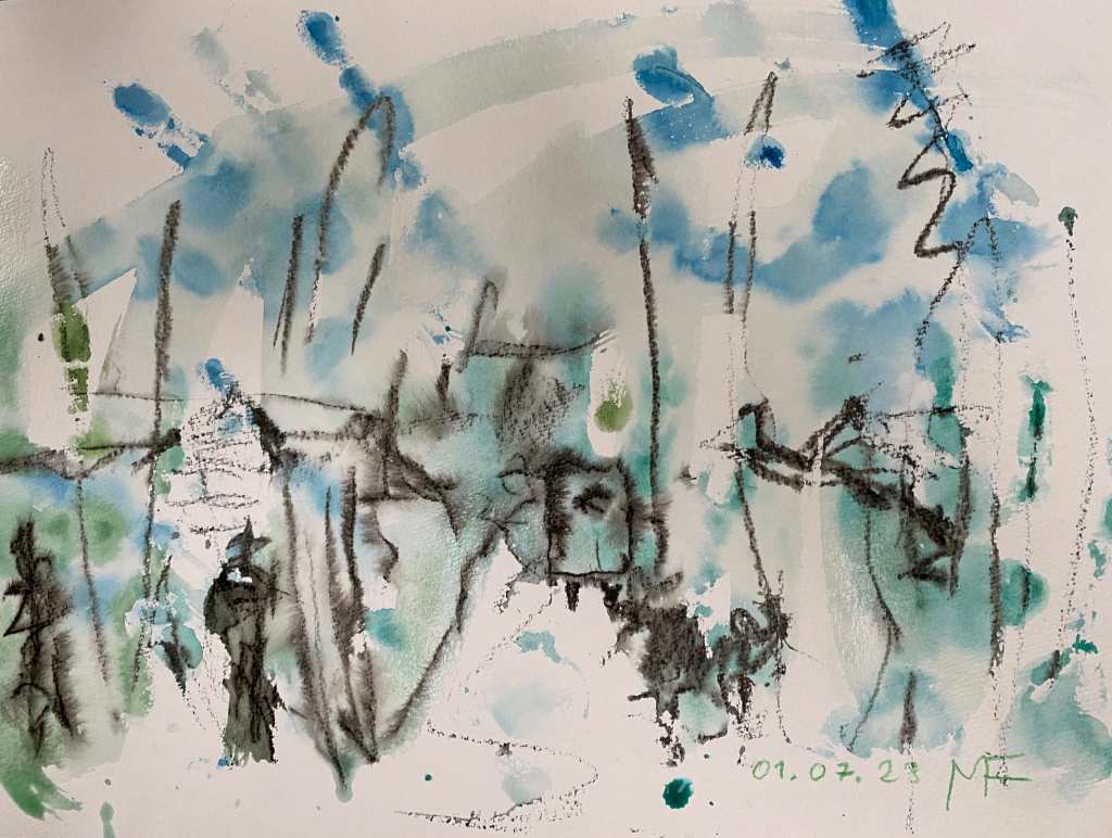 Watercolor-scetches of my journey to the North Cape: #Landscapes, 60×40 cm, 2023, Aquarell-Skizzen meiner Reise zum Nordkap: Landschaften #manfredforschnerart #bbk #badsachsa #absolvia #badsachsaart #germanartist #watercolors #finland #reindeers #elk #huskies