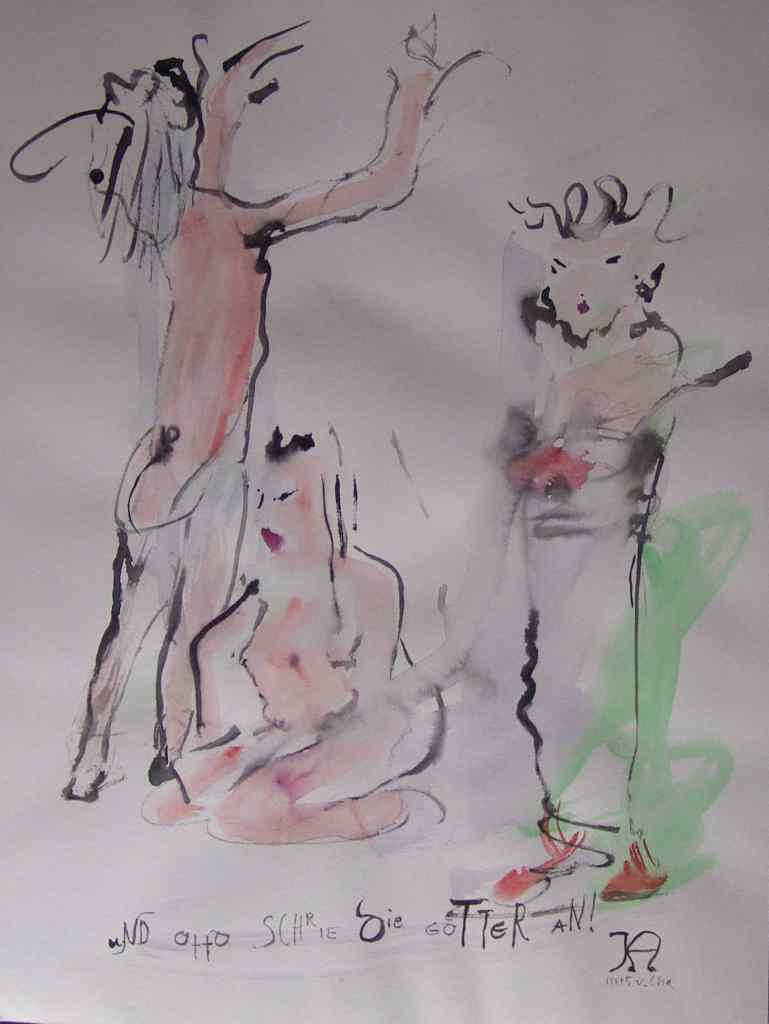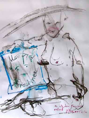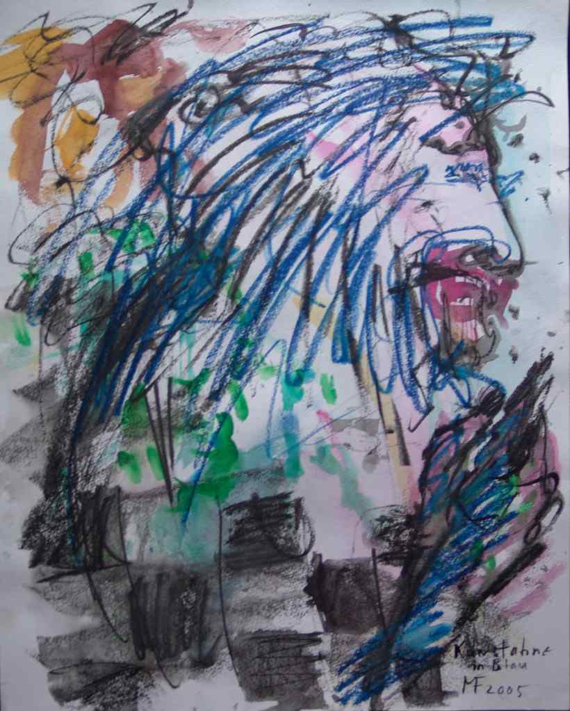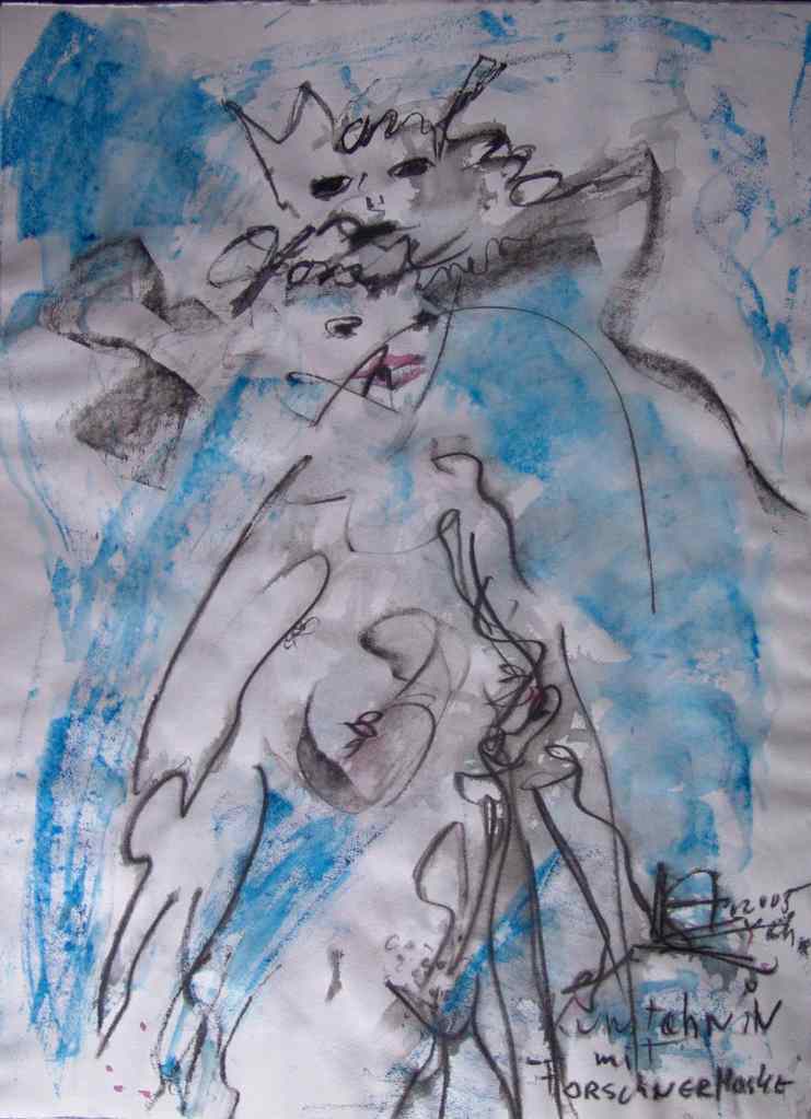 When I invented Manfred Forschner – Ancestor in blue – Ancestor with a Forschner mask – And Otto screamed at the gods, Watercolors, 48×64 cm, 2005 2005 #aquarell #artancestor #kunstahne #manfredforschnerart #fineart #germanart #europeanart #artnet #prehistoricart